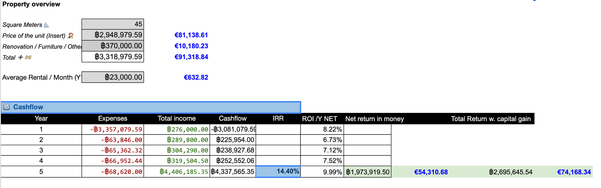 - Purchase price: 2,948,000 THB (≈ 78,000 EUR)