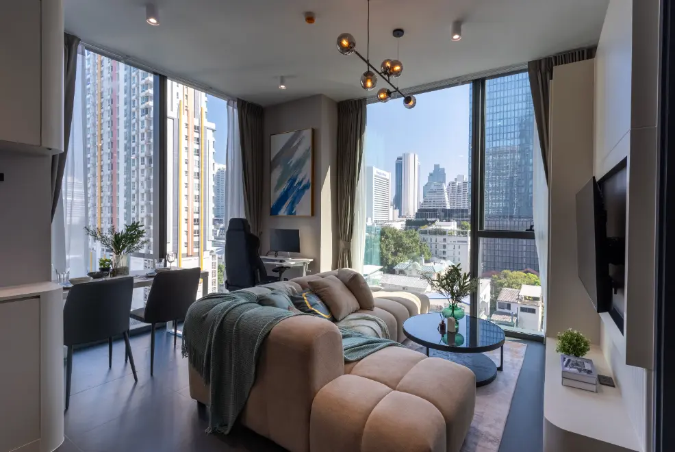 A 1-bedroom apartment in the Eastern part of Bangkok, with two pools, coworking, gym and shuttle to the nearest BTS Station. Furnished, decorated and currently rented out on mid-term rentals.